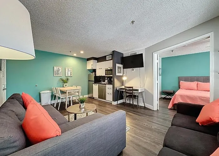 Zu den Selbstversorger-Einrichtungen gehört eine komplette Küche mit einer Mikrowelle. Das Restaurant Charley's Steak House & Seafood Grille liegt lediglich 13 Gehminuten von diesem Apartment entfernt. Die Bushaltestelle Celebration Place ist in rund 900 Meter Entfernung vom Two Bed Condo In Parkway Palms Resort Condo. Diese Unterkünfte verfügt über einen beheizten Swimmingpool.